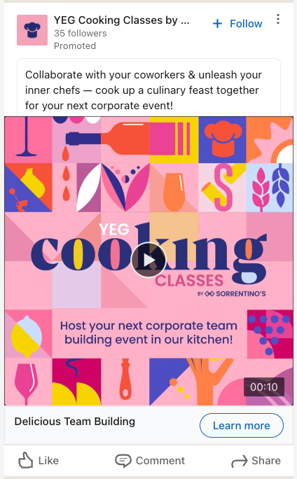 Client was wanting to promote their cooking classes to a more corporate crowd looking for some more group team bonding type of clients. They chose specifically LinkedIn to target that more corporate crowd.